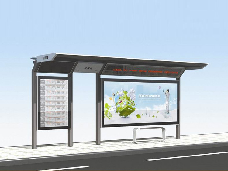 公交車候車亭一般是與公交站牌相配套的,為方便公交乘客候車時(shí)遮陽(yáng)、防雨等,在車站、道路兩旁或綠化帶的港灣式公交?空旧辖ㄔO(shè)的交通設(shè)施。由于城市公交的日益發(fā)達(dá),候車亭已發(fā)展成為城市一個(gè)不可或缺的重要組成部分,設(shè)計(jì)精美的候車亭也成為了城市一道美麗的風(fēng)景。 一般候車亭棚體主要頂棚、立柱、頂弓、廣告燈箱和坐凳組成,也有用隔板來(lái)代替廣告燈箱的。