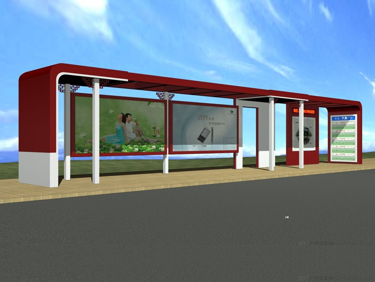 公交車候車亭一般是與公交站牌相配套的,為方便公交乘客候車時(shí)遮陽(yáng)、防雨等,在車站、道路兩旁或綠化帶的港灣式公交?空旧辖ㄔO(shè)的交通設(shè)施。由于城市公交的日益發(fā)達(dá),候車亭已發(fā)展成為城市一個(gè)不可或缺的重要組成部分,設(shè)計(jì)精美的候車亭也成為了城市一道美麗的風(fēng)景。 一般候車亭棚體主要頂棚、立柱、頂弓、廣告燈箱和坐凳組成,也有用隔板來代替廣告燈箱的。