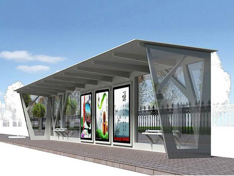 公交車候車亭一般是與公交站牌相配套的,為方便公交乘客候車時(shí)遮陽(yáng)、防雨等,在車站、道路兩旁或綠化帶的港灣式公交?空旧辖ㄔO(shè)的交通設(shè)施。由于城市公交的日益發(fā)達(dá),候車亭已發(fā)展成為城市一個(gè)不可或缺的重要組成部分,設(shè)計(jì)精美的候車亭也成為了城市一道美麗的風(fēng)景。 一般候車亭棚體主要頂棚、立柱、頂弓、廣告燈箱和坐凳組成,也有用隔板來(lái)代替廣告燈箱的。