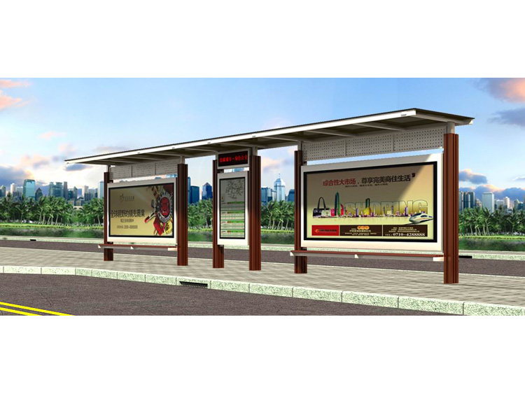 公交車候車亭一般是與公交站牌相配套的,為方便公交乘客候車時遮陽、防雨等,在車站、道路兩旁或綠化帶的港灣式公交?空旧辖ㄔO(shè)的交通設(shè)施。由于城市公交的日益發(fā)達,候車亭已發(fā)展成為城市一個不可或缺的重要組成部分,設(shè)計精美的候車亭也成為了城市一道美麗的風景。 一般候車亭棚體主要頂棚、立柱、頂弓、廣告燈箱和坐凳組成,也有用隔板來代替廣告燈箱的。
