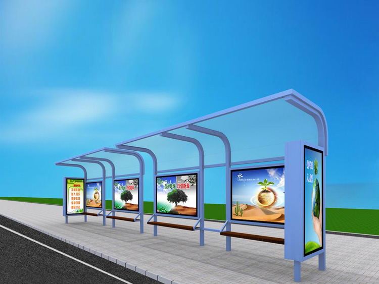 公交車候車亭一般是與公交站牌相配套的,為方便公交乘客候車時遮陽、防雨等,在車站、道路兩旁或綠化帶的港灣式公交?空旧辖ㄔO(shè)的交通設(shè)施。由于城市公交的日益發(fā)達,候車亭已發(fā)展成為城市一個不可或缺的重要組成部分,設(shè)計精美的候車亭也成為了城市一道美麗的風景。 一般候車亭棚體主要頂棚、立柱、頂弓、廣告燈箱和坐凳組成,也有用隔板來代替廣告燈箱的。