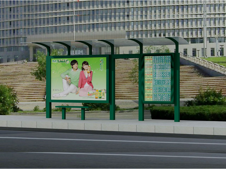 公交車候車亭一般是與公交站牌相配套的,為方便公交乘客候車時(shí)遮陽(yáng)、防雨等,在車站、道路兩旁或綠化帶的港灣式公交?空旧辖ㄔO(shè)的交通設(shè)施。由于城市公交的日益發(fā)達(dá),候車亭已發(fā)展成為城市一個(gè)不可或缺的重要組成部分,設(shè)計(jì)精美的候車亭也成為了城市一道美麗的風(fēng)景。 一般候車亭棚體主要頂棚、立柱、頂弓、廣告燈箱和坐凳組成,也有用隔板來(lái)代替廣告燈箱的。
