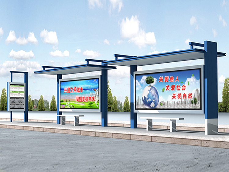 公交車候車亭一般是與公交站牌相配套的,為方便公交乘客候車時遮陽、防雨等,在車站、道路兩旁或綠化帶的港灣式公交?空旧辖ㄔO(shè)的交通設(shè)施。由于城市公交的日益發(fā)達,候車亭已發(fā)展成為城市一個不可或缺的重要組成部分,設(shè)計精美的候車亭也成為了城市一道美麗的風景。 一般候車亭棚體主要頂棚、立柱、頂弓、廣告燈箱和坐凳組成,也有用隔板來代替廣告燈箱的。