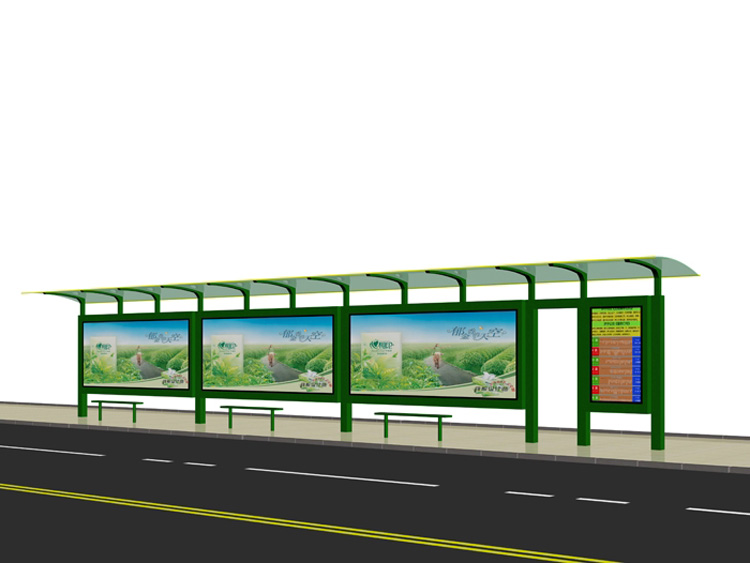 公交車候車亭一般是與公交站牌相配套的,為方便公交乘客候車時遮陽、防雨等,在車站、道路兩旁或綠化帶的港灣式公交?空旧辖ㄔO(shè)的交通設(shè)施。由于城市公交的日益發(fā)達,候車亭已發(fā)展成為城市一個不可或缺的重要組成部分,設(shè)計精美的候車亭也成為了城市一道美麗的風景。 一般候車亭棚體主要頂棚、立柱、頂弓、廣告燈箱和坐凳組成,也有用隔板來代替廣告燈箱的。