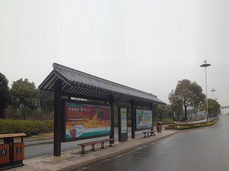 公交車候車亭一般是與公交站牌相配套的,為方便公交乘客候車時遮陽、防雨等,在車站、道路兩旁或綠化帶的港灣式公交?空旧辖ㄔO(shè)的交通設(shè)施。由于城市公交的日益發(fā)達(dá),候車亭已發(fā)展成為城市一個不可或缺的重要組成部分,設(shè)計精美的候車亭也成為了城市一道美麗的風(fēng)景。 一般候車亭棚體主要頂棚、立柱、頂弓、廣告燈箱和坐凳組成,也有用隔板來代替廣告燈箱的。
