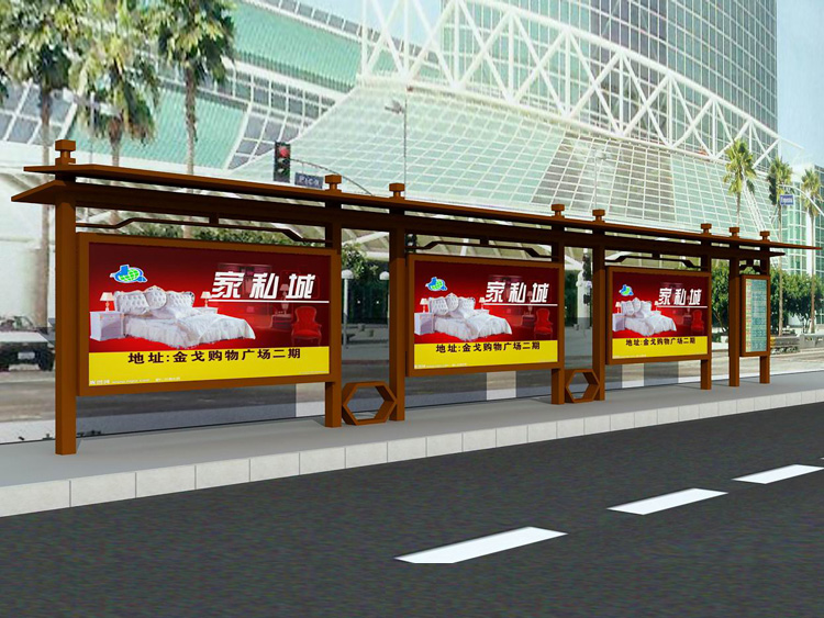 公交車候車亭一般是與公交站牌相配套的,為方便公交乘客候車時(shí)遮陽(yáng)、防雨等,在車站、道路兩旁或綠化帶的港灣式公交停靠站上建設(shè)的交通設(shè)施。由于城市公交的日益發(fā)達(dá),候車亭已發(fā)展成為城市一個(gè)不可或缺的重要組成部分,設(shè)計(jì)精美的候車亭也成為了城市一道美麗的風(fēng)景。 一般候車亭棚體主要頂棚、立柱、頂弓、廣告燈箱和坐凳組成,也有用隔板來(lái)代替廣告燈箱的。