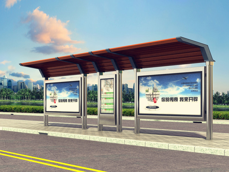 公交車候車亭一般是與公交站牌相配套的,為方便公交乘客候車時遮陽、防雨等,在車站、道路兩旁或綠化帶的港灣式公交?空旧辖ㄔO的交通設施。由于城市公交的日益發(fā)達,候車亭已發(fā)展成為城市一個不可或缺的重要組成部分,設計精美的候車亭也成為了城市一道美麗的風景。 一般候車亭棚體主要頂棚、立柱、頂弓、廣告燈箱和坐凳組成,也有用隔板來代替廣告燈箱的。