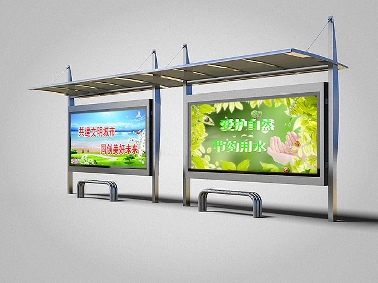 公交車候車亭一般是與公交站牌相配套的,為方便公交乘客候車時遮陽、防雨等,在車站、道路兩旁或綠化帶的港灣式公交停靠站上建設(shè)的交通設(shè)施。由于城市公交的日益發(fā)達,候車亭已發(fā)展成為城市一個不可或缺的重要組成部分,設(shè)計精美的候車亭也成為了城市一道美麗的風景。 一般候車亭棚體主要頂棚、立柱、頂弓、廣告燈箱和坐凳組成,也有用隔板來代替廣告燈箱的。