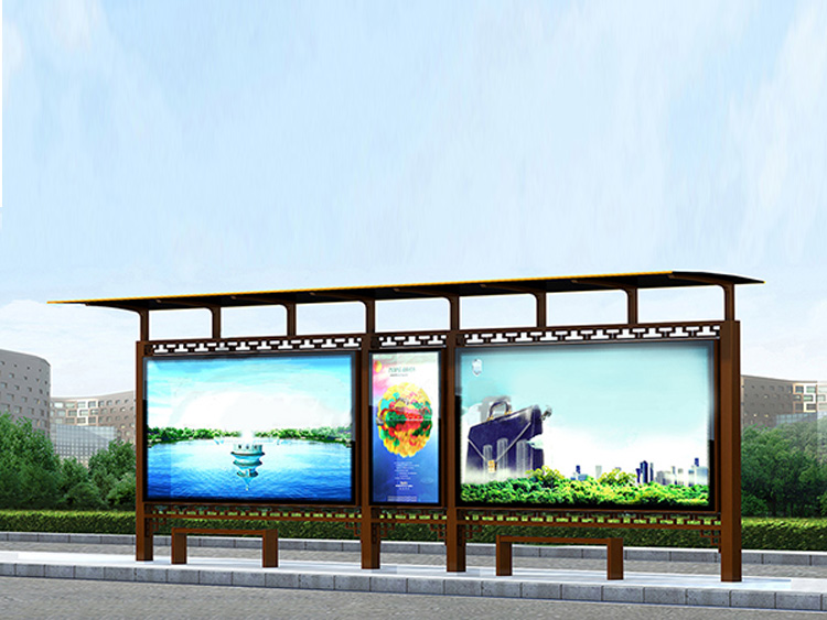 公交車候車亭一般是與公交站牌相配套的,為方便公交乘客候車時遮陽、防雨等,在車站、道路兩旁或綠化帶的港灣式公交?空旧辖ㄔO(shè)的交通設(shè)施。由于城市公交的日益發(fā)達,候車亭已發(fā)展成為城市一個不可或缺的重要組成部分,設(shè)計精美的候車亭也成為了城市一道美麗的風(fēng)景。 一般候車亭棚體主要頂棚、立柱、頂弓、廣告燈箱和坐凳組成,也有用隔板來代替廣告燈箱的。