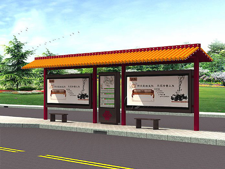 公交車(chē)候車(chē)亭一般是與公交站牌相配套的,為方便公交乘客候車(chē)時(shí)遮陽(yáng)、防雨等,在車(chē)站、道路兩旁或綠化帶的港灣式公交停靠站上建設(shè)的交通設(shè)施。由于城市公交的日益發(fā)達(dá),候車(chē)亭已發(fā)展成為城市一個(gè)不可或缺的重要組成部分,設(shè)計(jì)精美的候車(chē)亭也成為了城市一道美麗的風(fēng)景。 一般候車(chē)亭棚體主要頂棚、立柱、頂弓、廣告燈箱和坐凳組成,也有用隔板來(lái)代替廣告燈箱的。
