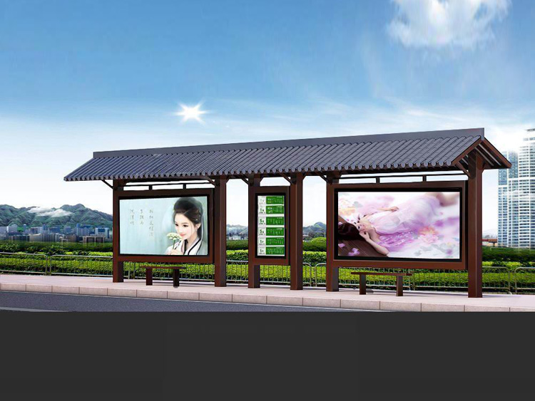 公交車候車亭一般是與公交站牌相配套的,為方便公交乘客候車時(shí)遮陽(yáng)、防雨等,在車站、道路兩旁或綠化帶的港灣式公交?空旧辖ㄔO(shè)的交通設(shè)施。由于城市公交的日益發(fā)達(dá),候車亭已發(fā)展成為城市一個(gè)不可或缺的重要組成部分,設(shè)計(jì)精美的候車亭也成為了城市一道美麗的風(fēng)景。 一般候車亭棚體主要頂棚、立柱、頂弓、廣告燈箱和坐凳組成,也有用隔板來(lái)代替廣告燈箱的。