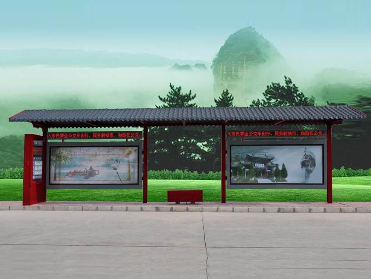 公交車候車亭一般是與公交站牌相配套的,為方便公交乘客候車時(shí)遮陽、防雨等,在車站、道路兩旁或綠化帶的港灣式公交?空旧辖ㄔO(shè)的交通設(shè)施。由于城市公交的日益發(fā)達(dá),候車亭已發(fā)展成為城市一個(gè)不可或缺的重要組成部分,設(shè)計(jì)精美的候車亭也成為了城市一道美麗的風(fēng)景。 一般候車亭棚體主要頂棚、立柱、頂弓、廣告燈箱和坐凳組成,也有用隔板來代替廣告燈箱的。