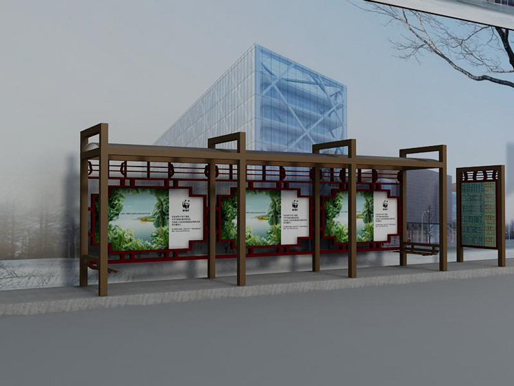 公交車候車亭一般是與公交站牌相配套的,為方便公交乘客候車時遮陽、防雨等,在車站、道路兩旁或綠化帶的港灣式公交停靠站上建設(shè)的交通設(shè)施。由于城市公交的日益發(fā)達,候車亭已發(fā)展成為城市一個不可或缺的重要組成部分,設(shè)計精美的候車亭也成為了城市一道美麗的風(fēng)景。 一般候車亭棚體主要頂棚、立柱、頂弓、廣告燈箱和坐凳組成,也有用隔板來代替廣告燈箱的。