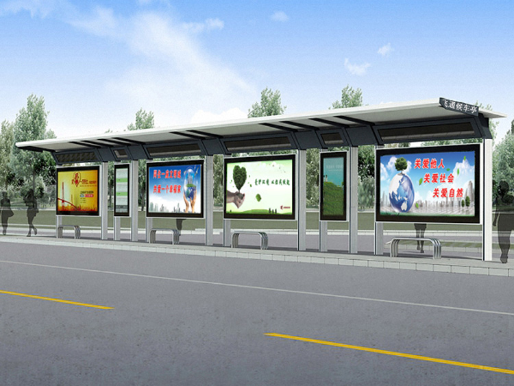 公交車候車亭一般是與公交站牌相配套的,為方便公交乘客候車時遮陽、防雨等,在車站、道路兩旁或綠化帶的港灣式公交?空旧辖ㄔO(shè)的交通設(shè)施。由于城市公交的日益發(fā)達,候車亭已發(fā)展成為城市一個不可或缺的重要組成部分,設(shè)計精美的候車亭也成為了城市一道美麗的風(fēng)景。 一般候車亭棚體主要頂棚、立柱、頂弓、廣告燈箱和坐凳組成,也有用隔板來代替廣告燈箱的。