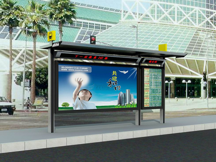 公交車候車亭一般是與公交站牌相配套的,為方便公交乘客候車時(shí)遮陽、防雨等,在車站、道路兩旁或綠化帶的港灣式公交停靠站上建設(shè)的交通設(shè)施。由于城市公交的日益發(fā)達(dá),候車亭已發(fā)展成為城市一個(gè)不可或缺的重要組成部分,設(shè)計(jì)精美的候車亭也成為了城市一道美麗的風(fēng)景。 一般候車亭棚體主要頂棚、立柱、頂弓、廣告燈箱和坐凳組成,也有用隔板來代替廣告燈箱的。